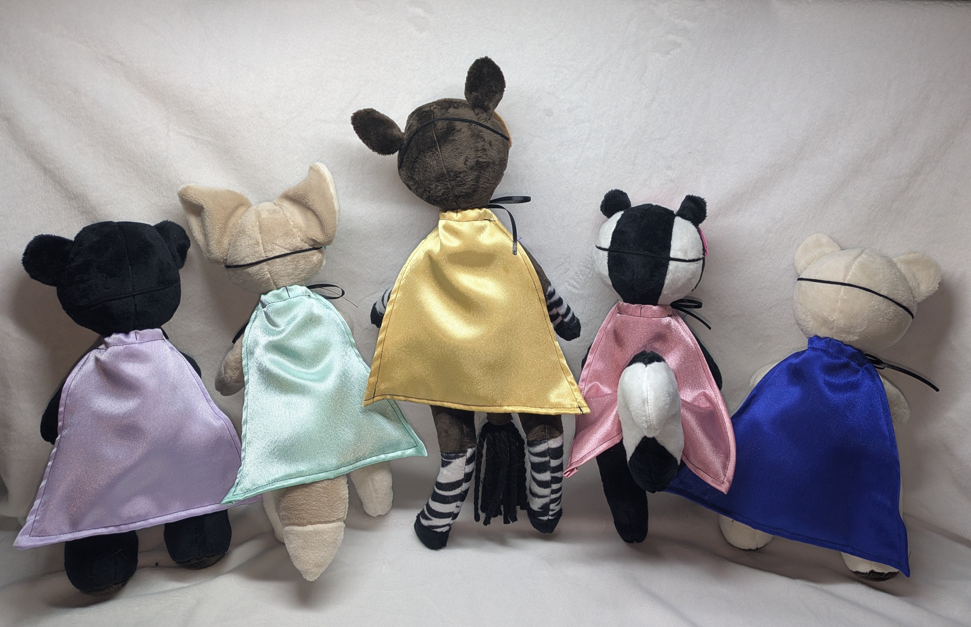 🪡 Accessories & Clothing – Superhero masks, lined capes (now available in two colors and embroidered), cozy vests, sweaters, jackets, and small baby blankies. Each accessory is designed to help your stuffed friend show off their personality and style.